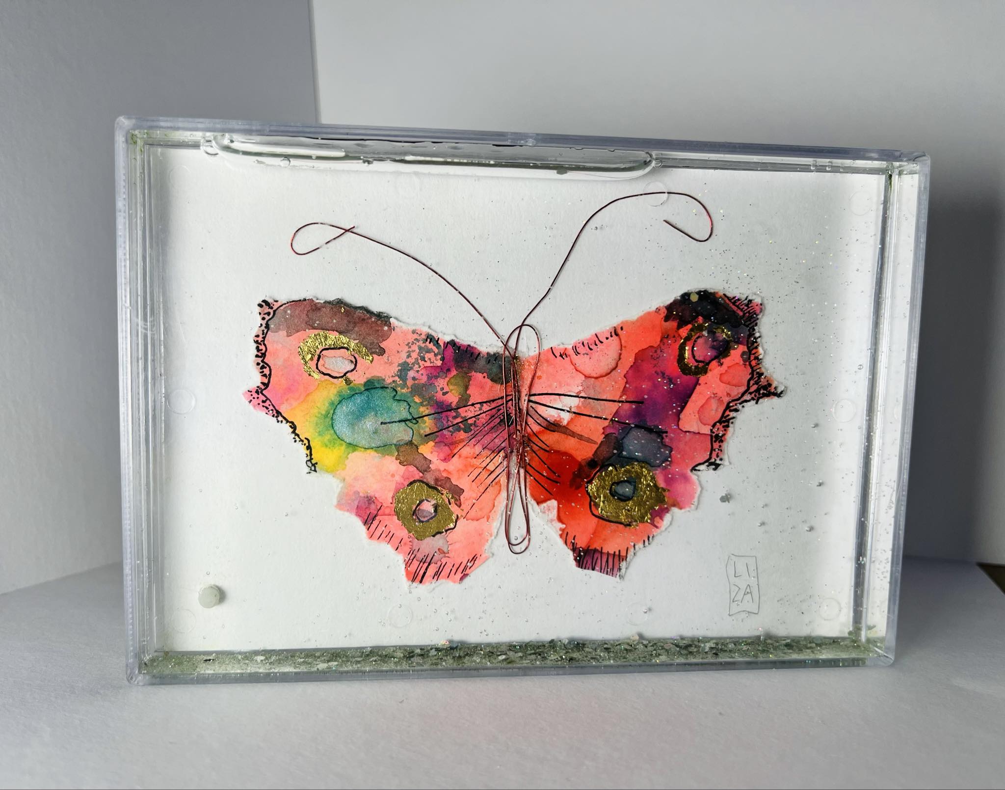 -Medium: Large 3d Perspex framed butterflies,  mixed media